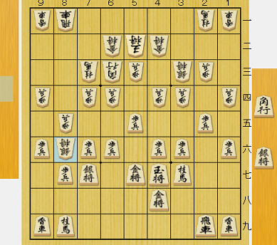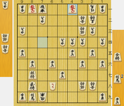 問題の局面が下図。▲8二角と両取りをかけ、両方受ける手はないから、飛車がどこかに逃げて6四角成で銀を取った手が桂に当たる。先手が優勢を拡大できるかに思われた。
