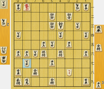 ここで藤井叡王の指した手は7一飛。これは攻めというより、7六の歩を取って竜になり受けに使おうという趣旨で、実況をみると叡王はこのあたりから時間一杯使わなかったから、劣勢を意識したようである。