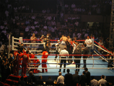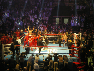 土曜日は予定が盛りだくさんで、後楽園ホールに着いた午後8時過ぎはまさに両選手入場の場面だった。