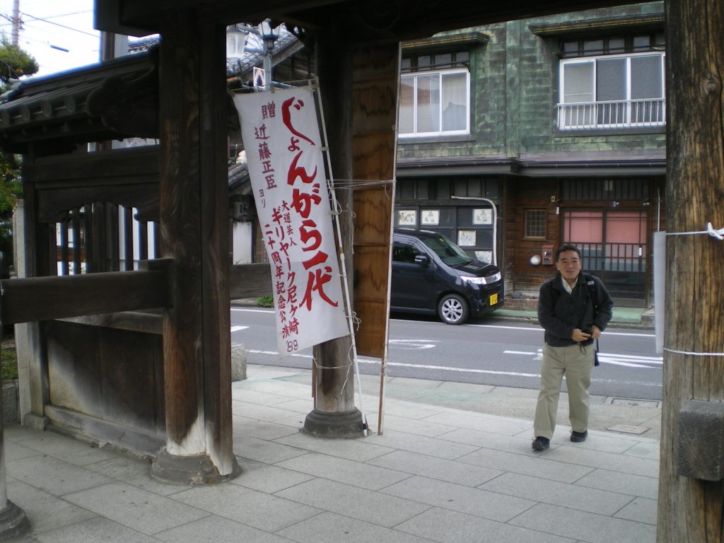会場となった成田山川越別院。真言宗なので、山門のところに弘法大師の銅像があります。