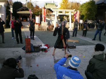 夏が終わったと思ったら、もう冬である。12月といえば、ギリヤーク師の川越公演である。冬だから当たり前だが、カレンダーをめくったとたんに寒くなった。温暖な千葉県でさえ寒いのだから、寒暖の差が激しい埼玉・川越はいかばかりであろう。身を刺す北風に震えながら、ギリヤーク師は大丈夫だろうかと心配しつつ、7日の日曜日を迎えた。