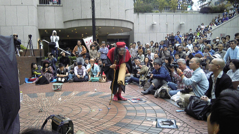 どうやら普段は車椅子に乗らなければ過ごせないらしい師匠だが、本当に踊ることができるのだろうか。半信半疑というよりも、とにかく無事に姿を見せてほしいと思いつつ、10月10日体育の日、新宿三井ビルに向かった。ちょっと肌寒く感じるのは、10月に入って真夏日があったりして、非常に暑かったせいもあるだろう。