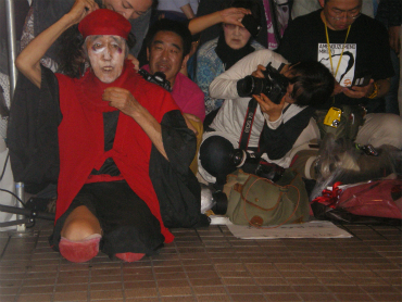 午後9時15分、人垣をかき分けてギリヤーク師登場。