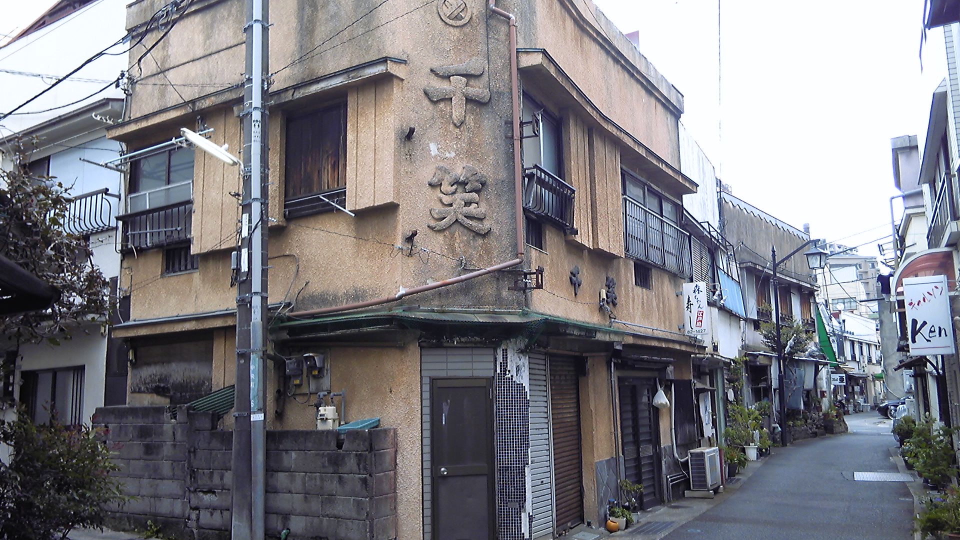 名高い熱海赤線跡の「千笑」。建築後60年以上を経過し、いまでは飲食店の経営も行っていないようです。