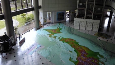 「地図と測量の科学館」内部。1階のフロアに広がっているのは、3D日本地図。私は3Dメガネが苦手なので、2Dでいいです。