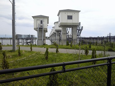 昔の八郎潟、現在の調整池の海側出口にある防潮水門。ここから上流に海水が上がらないようにしている。海水が入るとしじみが取れたりいいこともあるが、農業用水としては使えなくなってしまうのである。