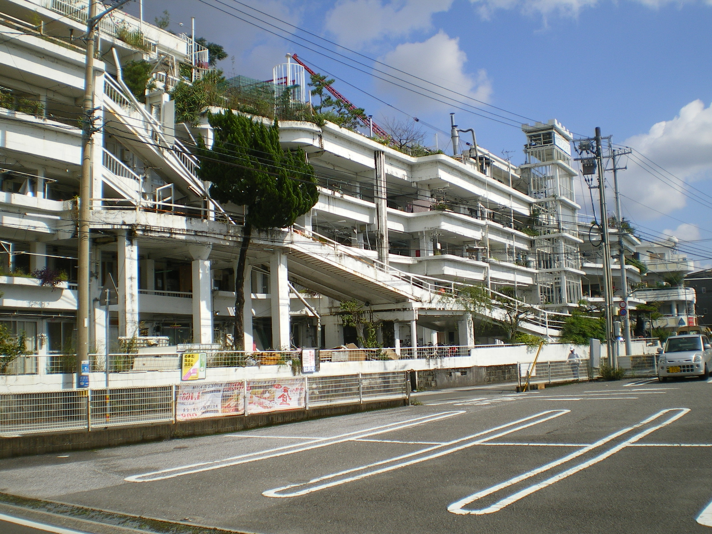 JR薊野駅から歩いてすぐ、大通りからも見える立地に日本の九龍城は屹立している。