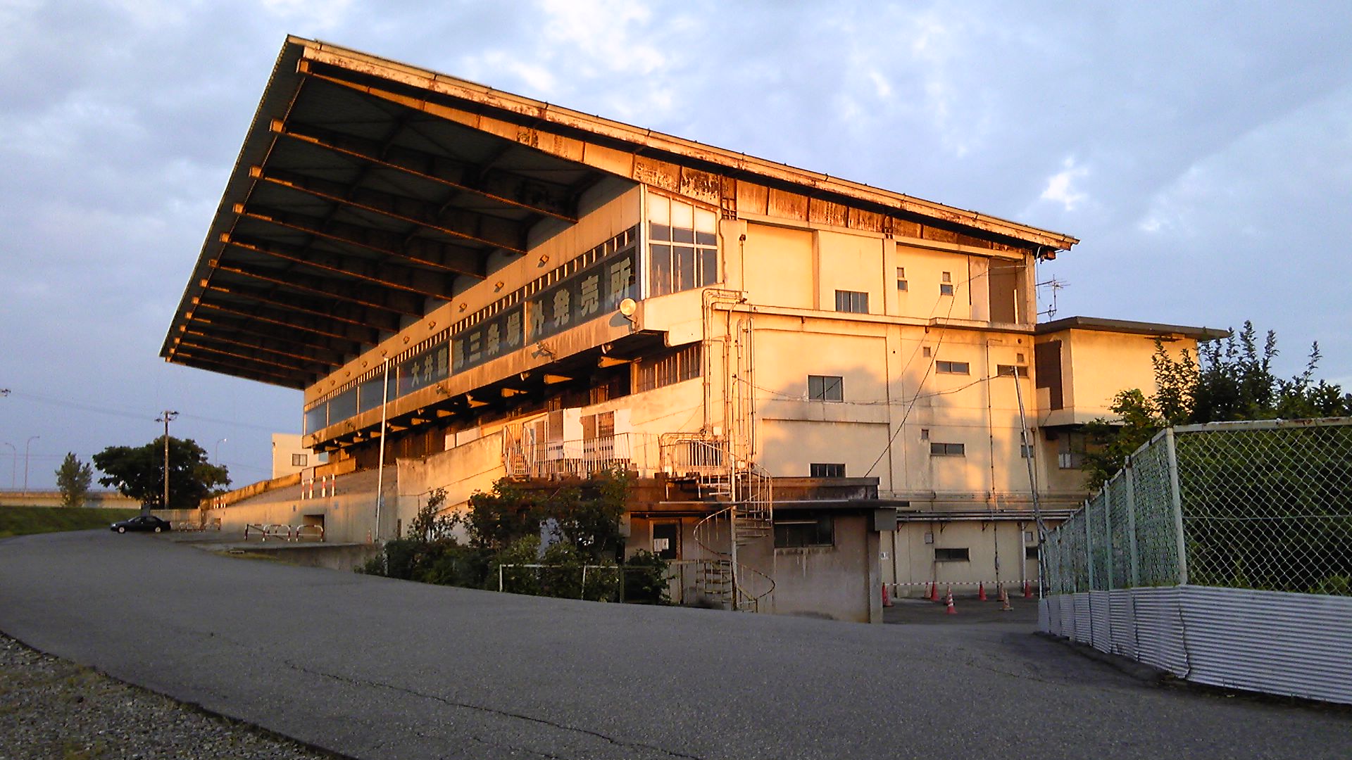 三条競馬場スタンド。2001年に三条競馬が廃止された後は、大井競馬の場外売り場として使用されている。ただ、2014年度をもって終了となる予定。