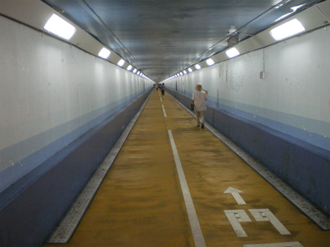 地下までエレベーターで降りなければならないので、使用時間は午前6時から午後10時までに限られている。それでも、観光客だけでなく、地元買い物客と思われる人や、ジョギングしている人もいるのは、国道ならではといったところだろうか。