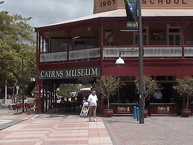 ケアンズ博物館は、やはり日本の田舎町に行くとよくある郷土資料館とよく似ている。まさかりやブーメランなどアポリジナルの昔の道具、開拓当時のいろいろな道具や写真などがこじんまりと展示されており、日本語のケアンズ紹介ビデオがずっと回っていた。