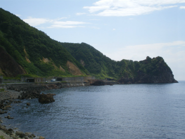 月形町から山を越えて1時間近く走る。道路ばかりで、ほとんど人家はない。時々「道民の森→」という表示があるから、中の方に人が住んでいるのかもしれない。クマもいそうだが。海水浴客でにぎわっている浜益で日本海側に出る。ここから雄冬岬を通るルートは、基本的にトンネルや工事中の道であり、車を止めて景色を楽しめるところはあまりない。