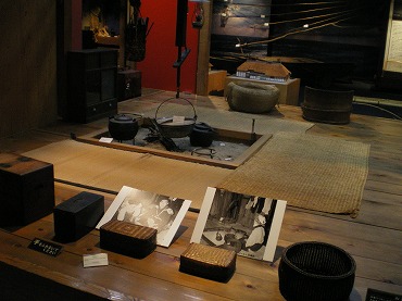 東北独特の屋内。板の間にござ、囲炉裏。私の祖先も、こうした囲炉裏端で長い冬を過ごしたのだろうか。