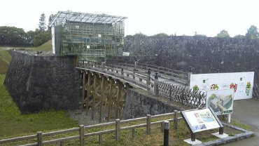 雨に煙る霞城公園。全国でも最大規模の城址公園であり、現在も発掘調査や整備が続けられている。
