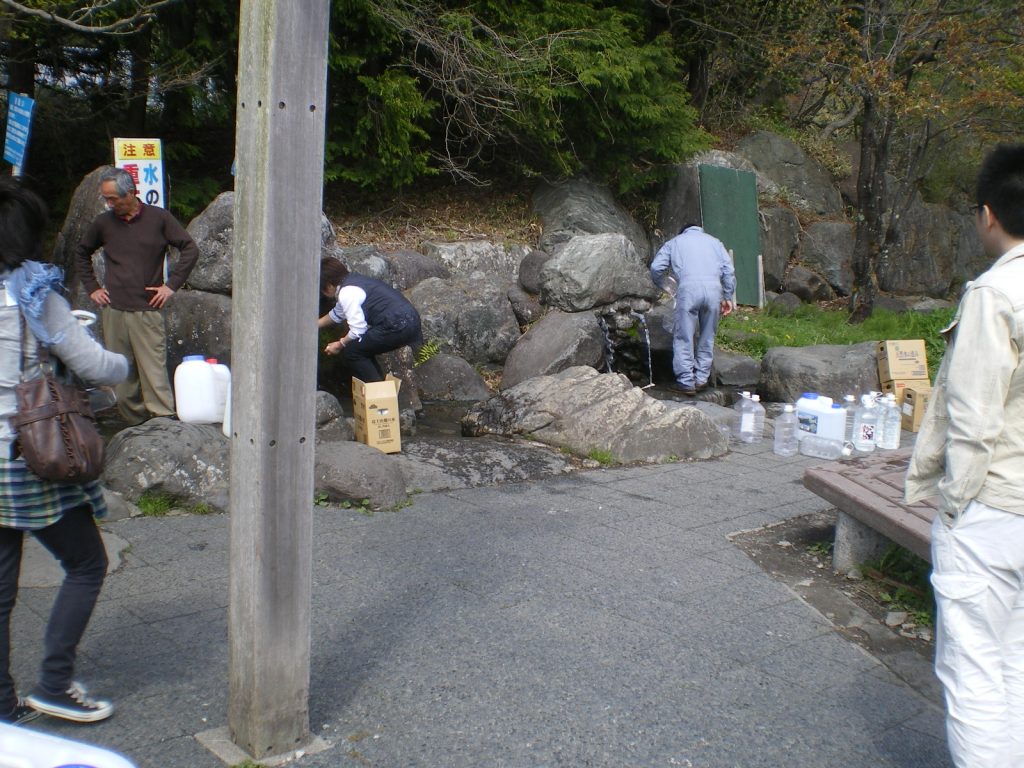 山道を何kmか入った先に尚仁沢湧水の源泉があり、名水百選にも選ばれたおいしい水ということである。湧水量は1日に6万5千トンというから、一人が100リットル持って行ったとしても65万人分ということになる。さすがにそんなには取りに来ない。羊蹄山麓のふきだし水が1日8万トンだから、ほぼ匹敵する規模になる。