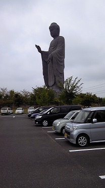 この大仏様、中に入ると800円かかるけれど、近くに行くだけならタダである。この大仏ができた頃墓地と一緒に宣伝していたので、てっきり墓地開発業者が作ったと思い込んでいたけれど、なんと東本願寺の施設であったのには驚いた。身長100m、ブロンズ像としては世界最大の仏様で、浄土真宗なので当然阿弥陀如来ということになる。