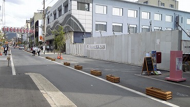 三条通りはJR奈良駅と近鉄奈良駅を結んでいる裏道で、真ん中辺に開化天皇陵がある。宮内庁の立て札を見るのが大好きな古墳フェチの私としてはこたえられないのであるが、それはさておき、しばらく前から通りを整備しているのは気付いていたのだけれど、今回来てみたら、通りの南側の商店街があとかたもなく、なくなっていたのである。