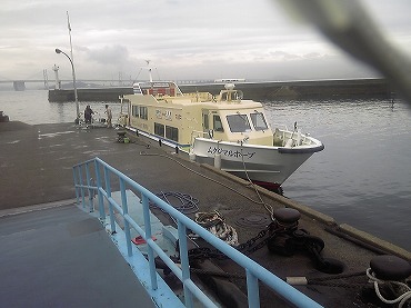 残念ながら、次の便で児島に向かうことにする。出航15分前に開いた窓口で児島行の切符を買い、乗船場に向かう。今度の船はすごく小さい。おそらく30人乗りくらいであろう。そして、乗ったのは私一人。この日の定期船ムクジマルホープ号は、私の貸切り船になってしまった。