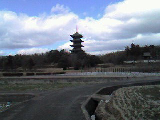 備中国分寺。田園地帯に突然五重塔が姿を現わす。