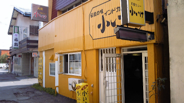 さて、その十字街に、「小いけ」の名を冠するカレー店が路地を隔てて2軒並立している。「小いけ本店」と「元祖小いけ」である。市電通りに面した「本店」は創業者・小池義次郎氏の大きな肖像画を掲げ、店の造りも大きい。そして「元祖」はというと、街の喫茶店のようなというか、規模的には「本店」より小さい。入口が開け放たれているところをみると、冷房もないようである。