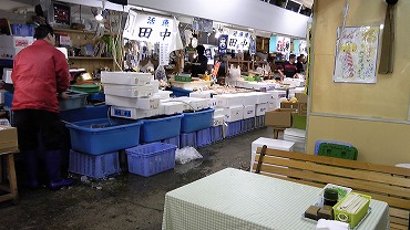 JR青森駅前から市街地に向かって通りをまっすぐ進むと、ほどなくアウガという高層ビルがある。この建物は、6階から上は市立図書館とか雇用促進センターが入っている公共施設なのであるが、下層階は商業施設で、特に地下1階は鮮魚を含む海産物の市場となっている。