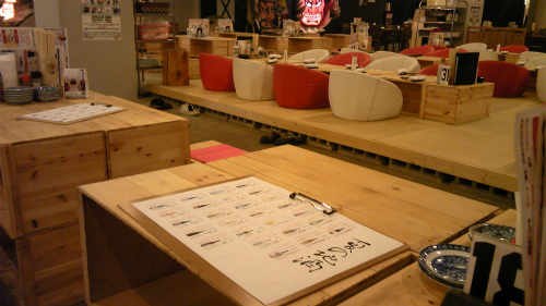店に入ると、「ソファとりんご箱、どちらになさいますか」と尋ねられる。一人なので遠慮して入口近くのりんご箱を選ぶ。だが、グループで来た時には靴を脱いでゆったり座るソファ席というのもありだろう。座るのがソファかりんご箱かの違いはあるが、どちらのテーブルもりんご箱である。何はともあれ、生ビールと田酒、肴にはマグロとイカの刺身をお願いする。