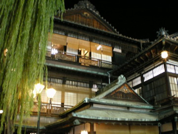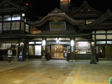 道後温泉はご存知のとおり松山市街から路面電車で10分ほどのところにある。終点からアーケード街のゆるやかな坂を上って2、300mほど行くと、松山市営の道後温泉本館がそびえ立ち、その向こうには温泉旅館街が続く。