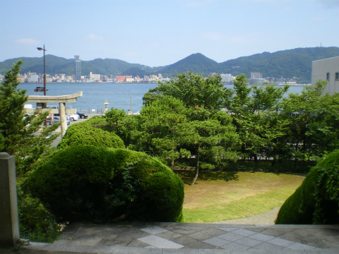 参拝を終わり振り返ると、関門海峡をはさんで門司の街がすぐそこである。そして、この前の海で壇ノ浦の戦いが行われた。