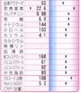 そして、冬に検査したときに増えていて気になったコレステロールが、HDLで57から56に、LDLで108から93に、それぞれ減っている。おそらくこれは、プロテインをやめたせいだろう。尿素窒素は検査項目に入っていないが、おそらく以前の数値に戻っているはずだ。