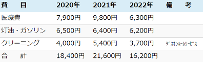 クリーニングは2021年末に掃除した台所の換気扇クリーニング分だけ減って、平年度ベース。そして、灯油・ガソリン代がほとんど増えなかったのはありがたかった。