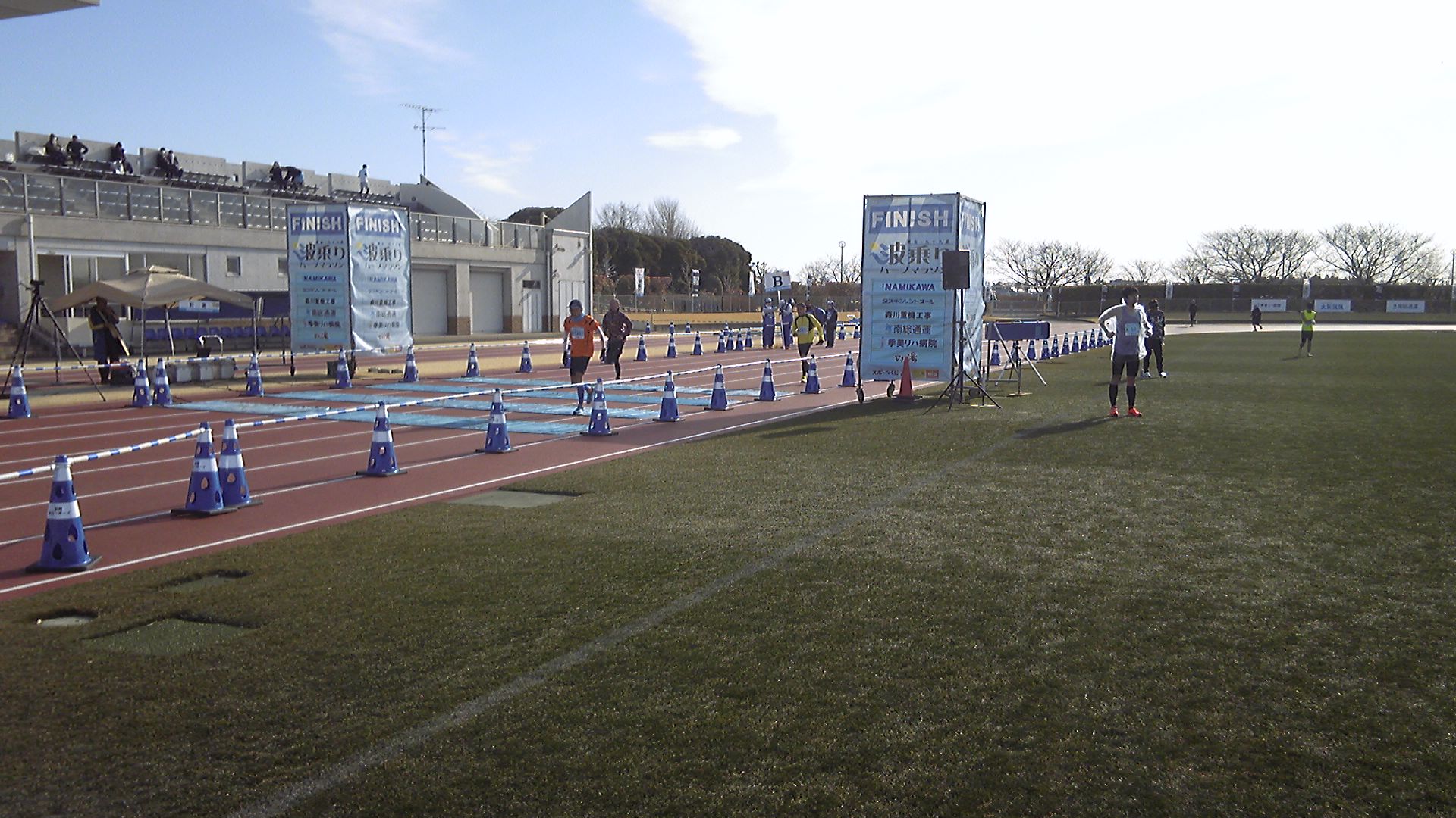 ゴール前の電光掲示板を見ると、29分に入ったところである。ゴールまではあと10秒かからない。目標タイムは達成したようだ。そのままゴール。記録証の出力は翌日ということだったが、1月15日午後5時現在まだできていない。ガーミンをやってない時に限ってこうなる(涙