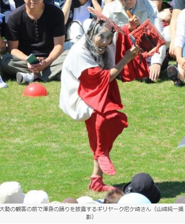 それはそうと、おとといの日曜日にギリヤークの函館公演が行われたそうだ。このところマスコミに採り上げられることの多いギリヤーク師だが、今回の函館公演も地元函館新聞の他、朝日・読売でも記事にされたとのことである。下は函館新聞の記事。