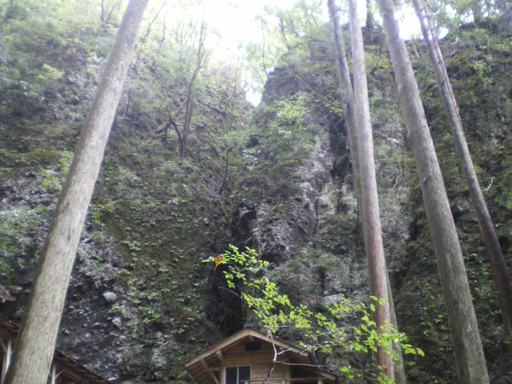 今回の白眉ともいえる岩屋寺の古い行場。岩の頂上に白山大権現が祀られていて、梯子でそこまで登る。鎌倉時代に描かれた「一遍上人絵伝」と同じ場所である。