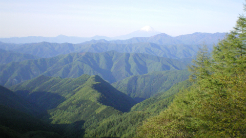 そうしたことを思えば、こうして山の上まで登って、まだ誰も通らない道で景色を楽しむ方がずっといい。ビルの上から地上を見ても、よそのビルの雑然とした屋上やら老朽化した公営住宅やら見たくもないものが見えて興ざめするが、山の上から見えるのは幾重にも連なった稜線であり、彼方の富士山である。残り少ない人生、できればいい景色を見て過ごしたいものである。