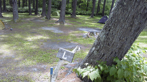 小梨平キャンプ場Lエリア。奥の緑が私のテント。