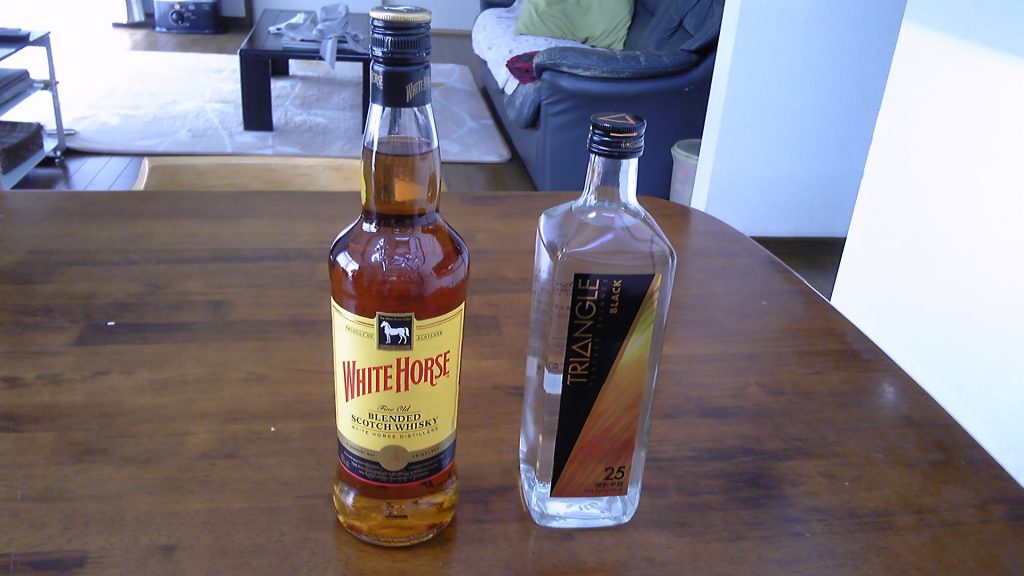 特価販売中のホワイトホースと、甲類からはトライアングル25度を買ってみた。2本合わせてお値段は1,450円。エビスビール6本セットとたいして変わらないし、そもそも「亀吉」の半分くらいである。