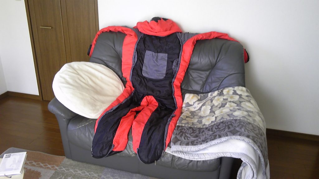 十年くらい前に購入したドッペルギャンガーの人型寝袋は、もともとキャンプ用品なのだが、わが家では冬の防寒着として使用している。基本的にひきこもり生活なので例年この寝袋が必需品であるが、今年はそれほど使うことがなかった。