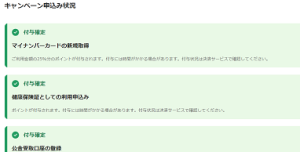 マイナポイントのサイトでキャンペーン申し込み状況を確認すると「付与確定」と表示される。しかし実際にポイントが還元されたかどうかは、決済サービス業者に確認くださいとのこと。